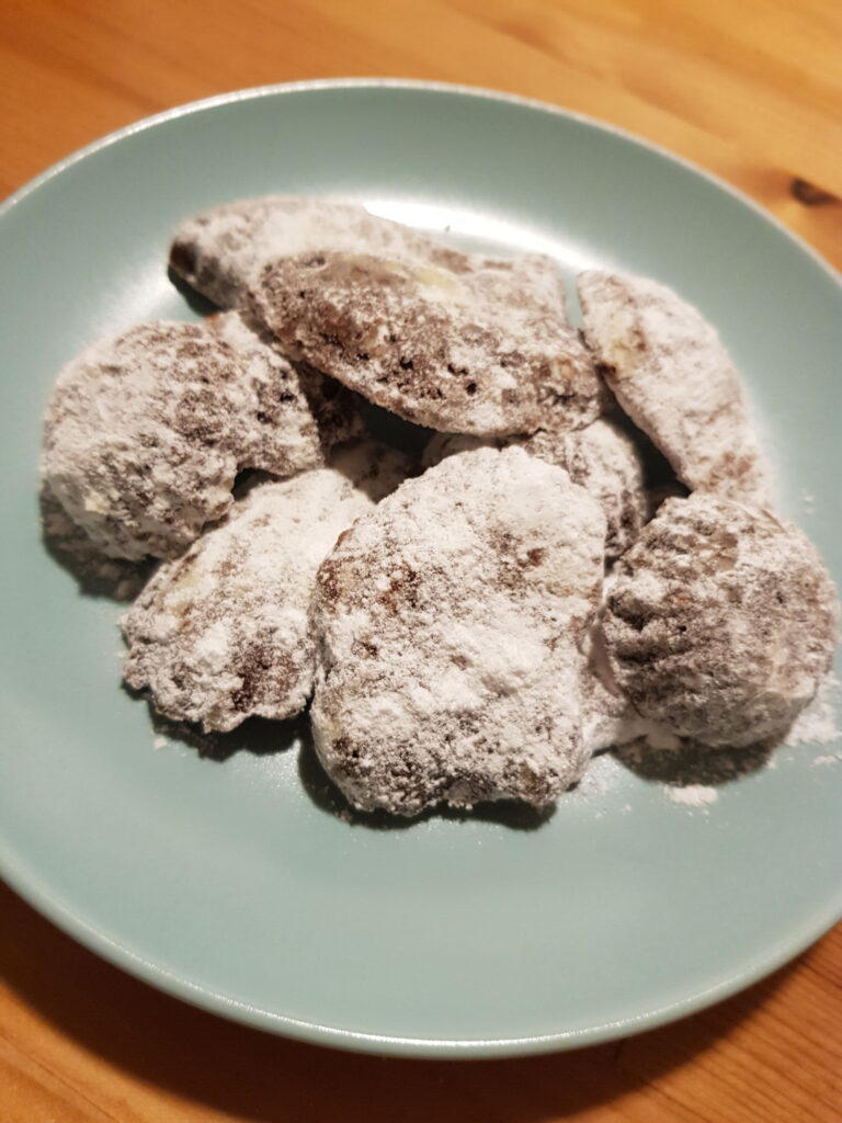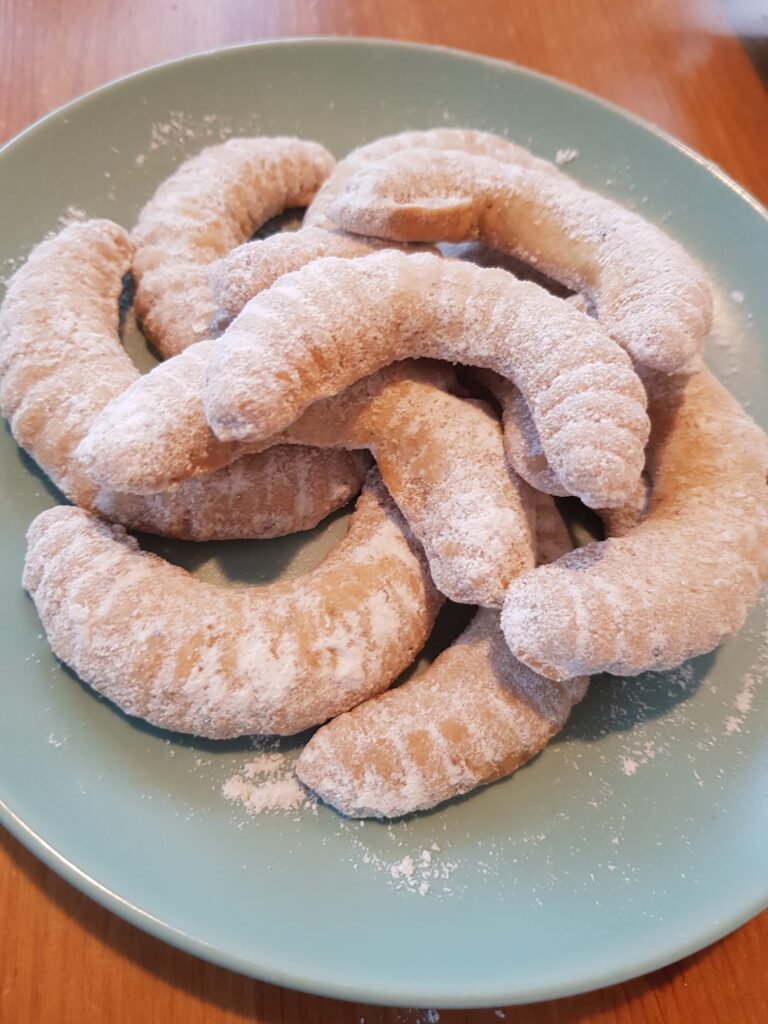 5. Hotové rohlíčky obal ve směsi cukru moučka a vanilkového cukru.