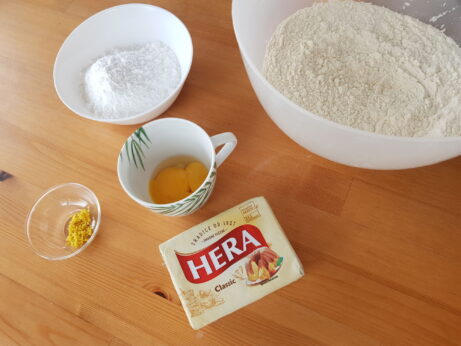 1. den: připrav základ těsta na perníčky a těsto na linecké (cca 30-45 minut)