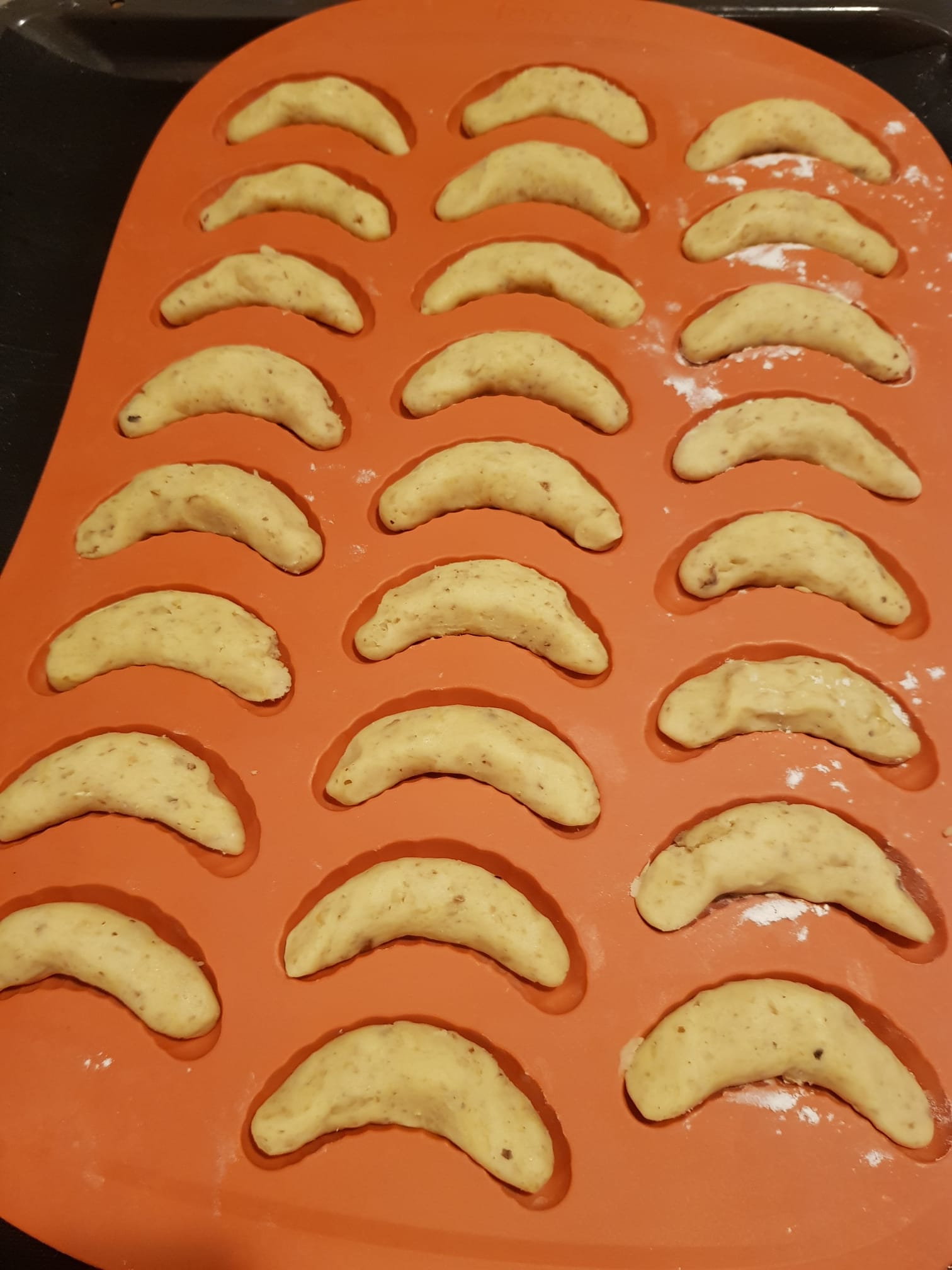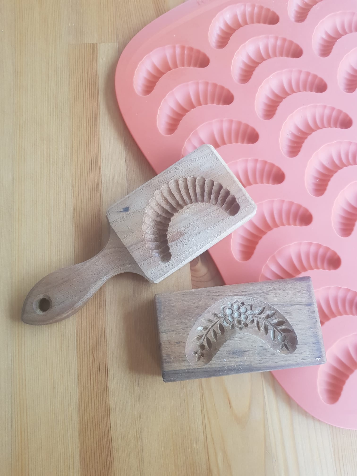 3. Pomocí dřevené nebo silikonové formy vytvaruj rohlíčky.