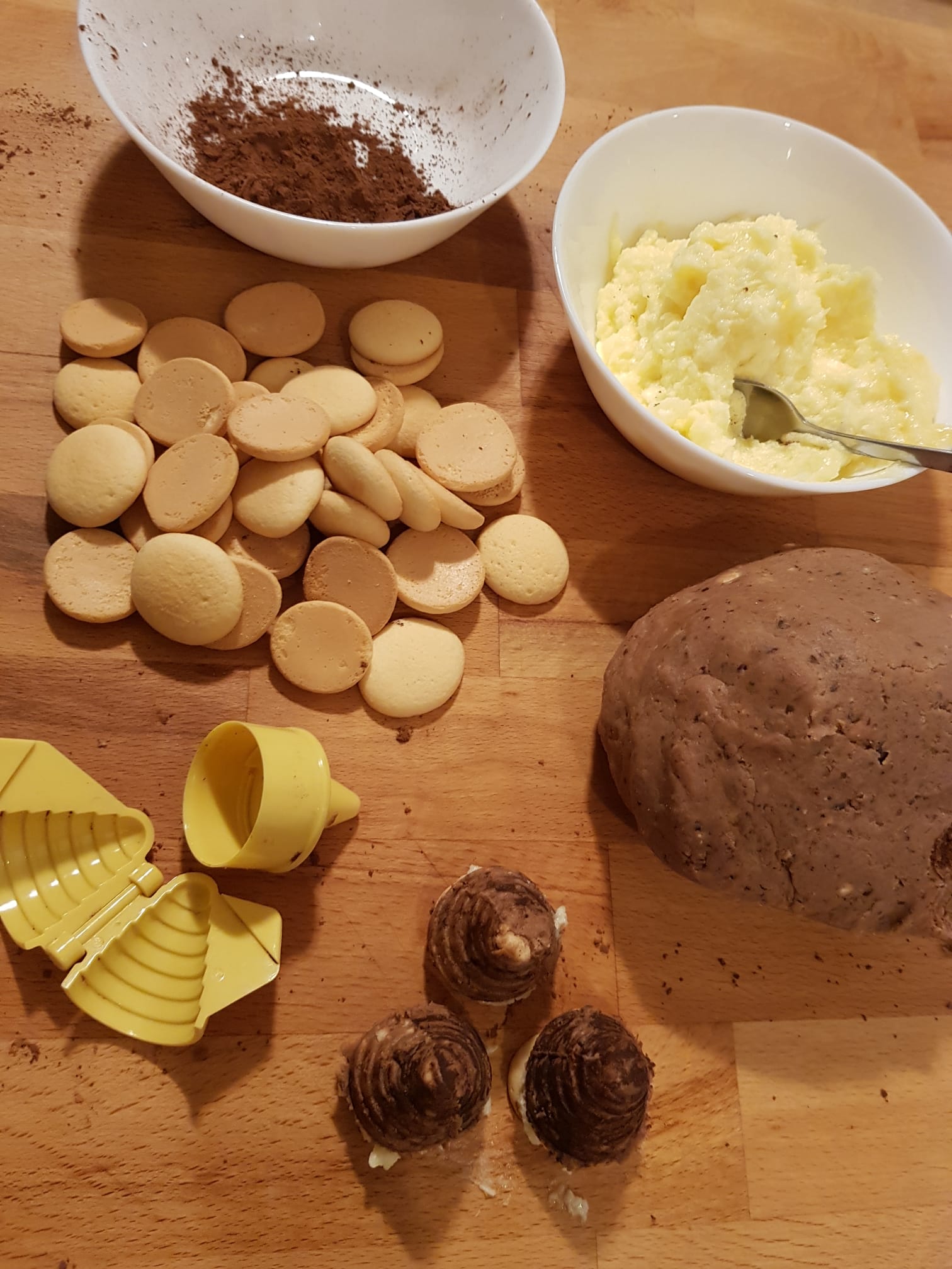 • + piškoty jako základna hnízda - anebo se dají upéct kolečka dle návodu na linecké těsto (jen přidáš do těsta lžičku kakaa, aby měla správnou barvu).