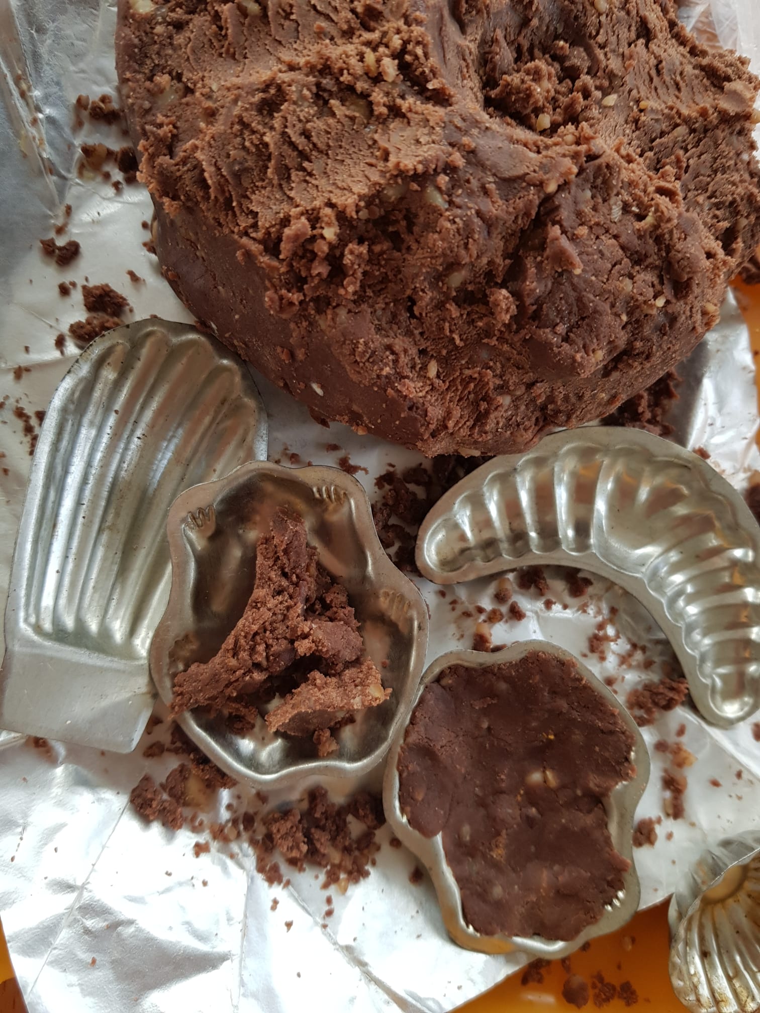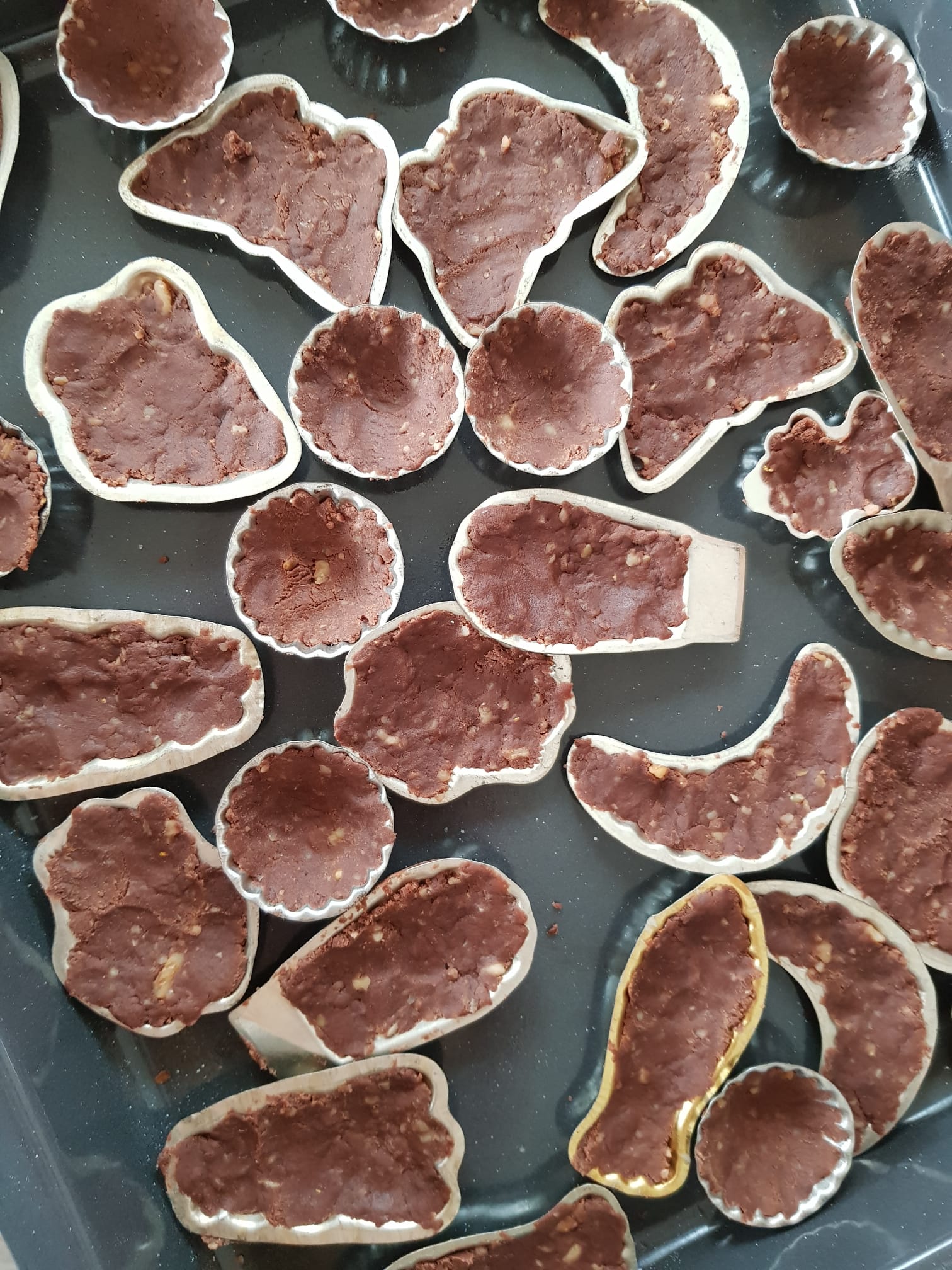 3. Kousky těsta vlačuj do formiček ve tvaru ořechových skořápek. Měl by v nich zůstat důlek na krém.