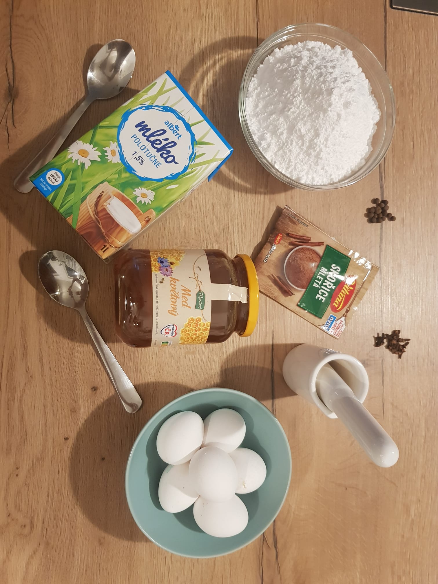2. Koření v míse dobře umícháme s cukrem, medem, vejci s mlékem.