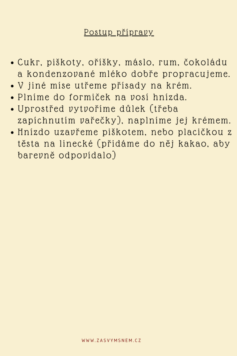 Vosí hnízda – nebo také včelí úlky – jsou prostě gastronomický úlet. Spojují v sobě lahodnou chuť salka, jemný dotek rumu a vaječného likéru.