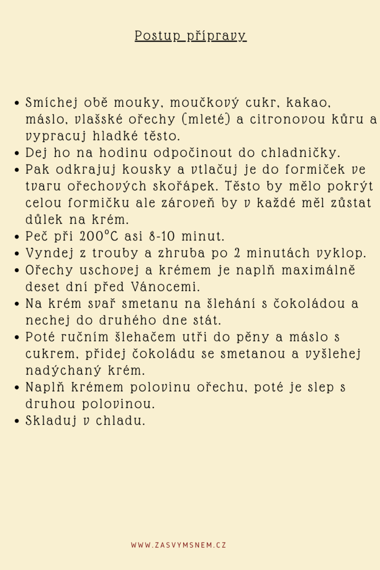 4. den: upeč pracny, rohlíčky a ořechy, připrav krém do ořechů (cca 90-120 minut)
